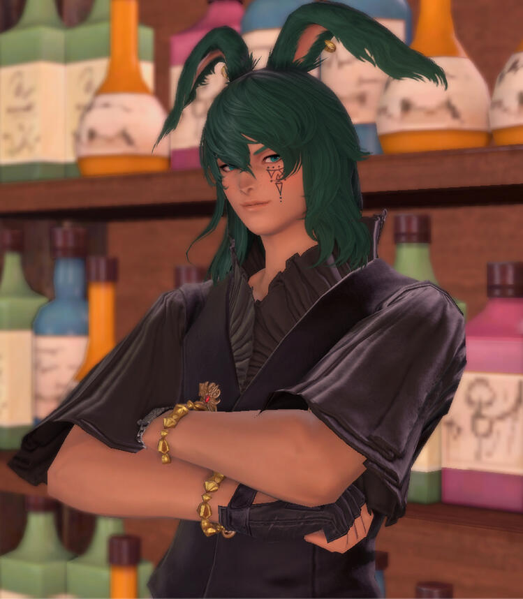 Mercenary + trackerA Xaelan hailing from the Dotharl tribe in Azem Steppe, Verra is a warrior struggling with a particularly peculiar Inner Beast. While it's never fully taken hold of them, they can never really turn it off, leading to a rather vicious and selfish personality. Whilst some might find them abraisive, those who know Verra will vouch for their fierce loyalty to friends and family. Whilst not a real member of the cafe, Verra often hunts wild game as ingredients at Chan's and Gravy's request and serves as Shoppe's liason to the seedy underbelly of Limsa Lominsa.More about Character